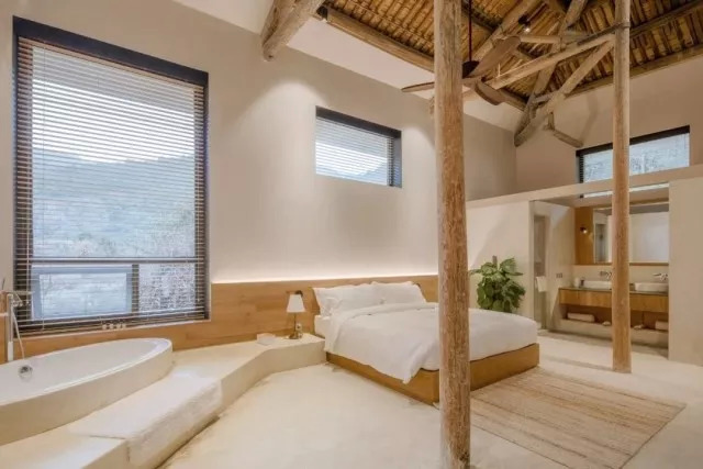 客房带泳池,建筑面积很大,几乎每个房间都有浴缸,浴缸也是完全对着山景的。