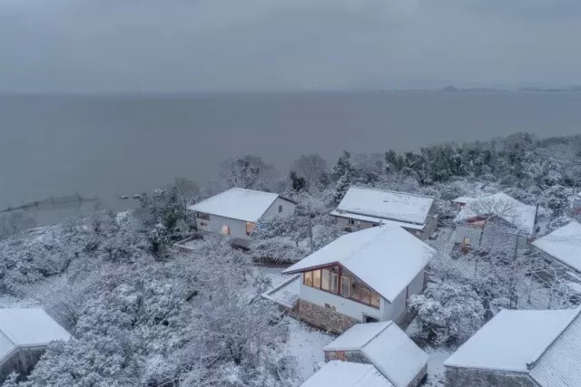 大乐之野·余山岛店位于苏州太湖的一个小岛上,它是三栋白色的小别墅,与世隔绝,隐匿在一片橘子林中。岛上自然条件优越,丰富的阳光和雨露适合多种果树和茶树的生长,岛上居民多种植果树、茶树,聚落便与农业种植相结合。