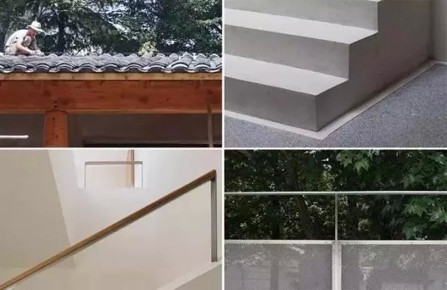 设计在细节层面预判了乡村建造中涉及材质交接、设备整合的问题,回避了一些惯常做法带来的干扰。例如瓦屋面交接的扁平化,室内外扶手的差异,水磨石与踢脚线的转化等等。
