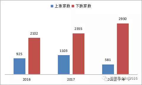 另外,在可比的3084家公司中,已经有2103家跌破了2016年初2638点的位置,占比68%,只有约三成980只股票涨幅为正数。