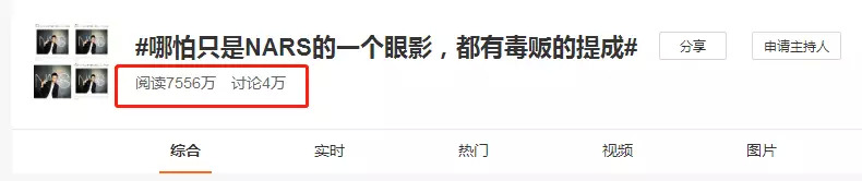 6月30日,微博上发起了#哪怕只是NARS的一个眼影,都有毒贩的提成#的话题,截至目前,已有阅读7556万,引起讨论4万,有网友表示,6月26日国际禁毒日刚过,NARS请涉毒明星站台,触犯了消费者的底线,“拒用NARS”、“一生黑”、“好走不送”的言论无不在表达而网友对NARS品牌的失望和抵制情绪。