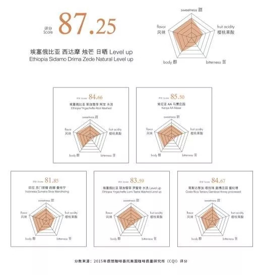 质管咖啡提供的6种咖啡获得了美国咖啡质量研究所的不俗成绩。质馆选用全球优质咖啡豆,每一种都可以追溯原产地。