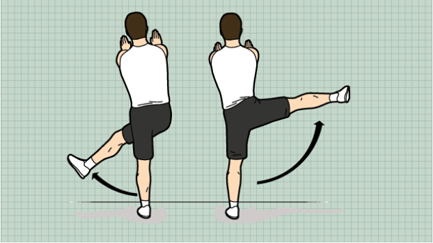 面对一堵墙,然后把双手支撑在墙上,腿朝前从一边摇摆到另一边,每条腿重复20遍。