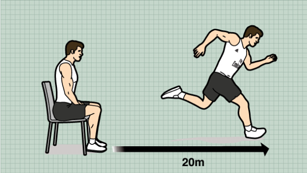 坐在长椅上,确认一系列不同距离的跑动目标,从座位向目标冲刺,直到完成20米冲刺,每3组做10遍。
