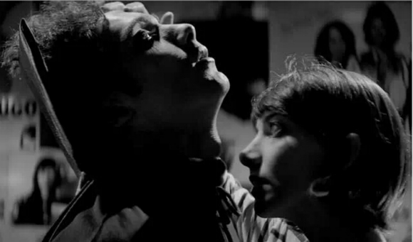 《夜里自己回家的姑娘》就非常艺术而且怪鸡,全片是2.35:1的宽画幅,但一般这种宽银幕都是大场面如战争片、科幻片、动作片的专利,可《夜里》焦距都很短,室内景占了多数,摄影机就喜欢特写男女主人公的漂亮脸蛋。而且,这还是一部黑白片,而如今用黑白摄影,多数都追求“经典”或“纪实”质感,极少会选用大片标准的2.35宽银幕。不过《夜里》的构图用光的确出众,既有经典好莱坞黑白片的味道,又有时髦锋利的“《罪恶之城》风范”(《综艺》影评语)。尤其是养眼的两位主角,吸血女郎Sheila Vand有欧洲女星的柔弱感,以及一种不那么精致的标致,而男一号Arash Marandi则“像极了詹姆斯·迪恩”(《好莱坞报道者》影评语),满是清澈单纯的帅气。影片中段,两人在莱昂诺尔·里奇的经典情歌《Hello!》里缓缓拥抱定情,画面、音乐、节奏、气氛达成了化学反应,像王家卫电影一样迷人。