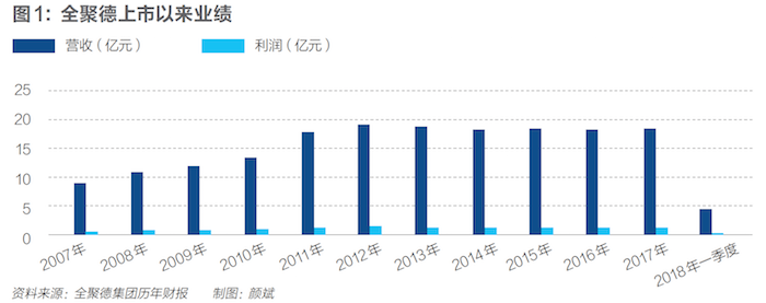 回顾全聚德过去五年的业绩,增长缓慢是不争的事实,反映在资本市场上,就是股价下跌、市值缩水。2013年到2016年,全聚德的营收一直徘徊在18亿到19亿元的水平,在某些财年营收甚至出现倒退。刚刚过去的2017年,全聚德的净利润同比下降了2.57%。