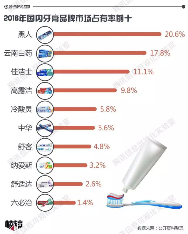 彼时,家用牙膏行业正在经历从野蛮生长到新创格局的阶段,除高露洁和宝洁旗下的佳洁士外,目前市场占有率第二的云南白药牙膏在2005年推出市场,目前市场占有率第一的黑人牙膏,也逐步从东南亚杀回国内市场。