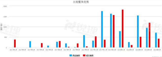 2017年1月-2018年5月远郊土地供销走势来源:锐理数据