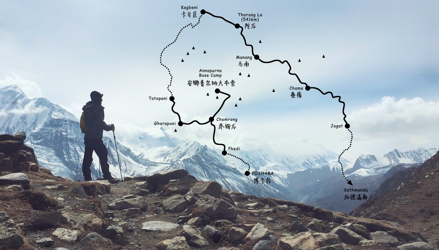 自那以后,就一直计划着再把安娜普尔纳大环线ACT走掉(Annapurna Circuit Trekking)。 这条线路主要是环绕安娜普尔纳群峰的外围,沿着河流山谷而上,一路来到喜马拉雅主山脉的北侧,穿越5416米的垭口,然后下降至苍凉的充满藏式风情的山谷。这条线路凭借着丰富的自然和人文景观,以及不算太高的难度,却又有极富挑战的高海拔垭口穿越,一直被评为全球最经典徒步线路之一。沿途有古老的寺庙及高山胡泊,不但能欣赏到奇幻的山区景色,还有机会体验各种不同的风土人情。