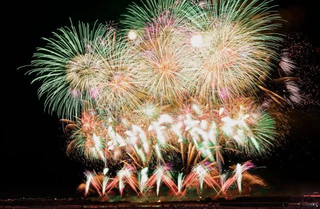 日本烟花以造型圆润著称,这是因为日本的烟花弹是圆形的,不像西方烟花弹呈圆柱形。