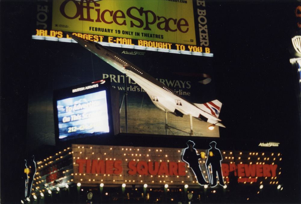 时代广场是我们不太情愿去的地方,虽然那些年也常常出没在那里。广场灯红酒绿,嘈杂无比,各色人种混杂,拥挤的街道上充斥着一种特殊的味道。那些国际观光客衣着光鲜,翩翩入时,出入百老汇剧院酒店的绅士淑女,夜空下无数霓虹灯广告牌上巨幅的俊男美女袒露的肌肤,音乐剧中类似西部牛仔的英雄们,对面是凯文·克兰的内裤广告。一座座摩天大楼反射出的七彩的高光。旋转门的背后闪出的势利的看门人。永远修不完的马路上迎面横着路障,一截粗大的烟囱将路面下供热管道的缕缕白色蒸汽引出,这是曼哈顿特有的景观。脚下的地铁通风口在冬季的时候排出大量浑浊而温暖的臭气,无家可归的人们、流浪汉、艺术家们藉此而取暖。街角横流着小便,观光马车遗留的马粪,这里的空气甜腻腻、臭烘烘,这里的艺术家必须勇敢而顽强,同行之间、或与非同行之间的为生意争夺地盘的争斗时有发生,大动干戈,甚至惊动警察。
