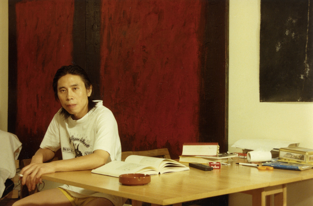 师哥那时是个异常严肃的满怀宗教感的画家,他在九十年代初期的画作常常使用综合材料,用笔用色都很重,冷冷的,是一个崇尚艺术的神性的使徒。一度与几个美国艺术家合用一个画室,画室位于布鲁克林百老汇大道的一座厂房内,隔出一小间便是睡房,窗外便是轰轰作响的地铁高架路。他的寝室充满神秘感,床高高地架起,一只小沙发,极其简单的家具,他在那只老旧的电视屏幕上用胶带满满地贴了一个十字,瘦小的身体埋在沙发里,两只手臂几乎要高举平放在沙发两侧扶手,说话时缓慢而又肯定。师哥那时喜欢穿一身黑,黑色紧瘦筒靴永远绑腿,衬衫掖进裤子里,你可以想象那副场景,再加上长发黑须,你能得到的便是一个不明国籍的人。