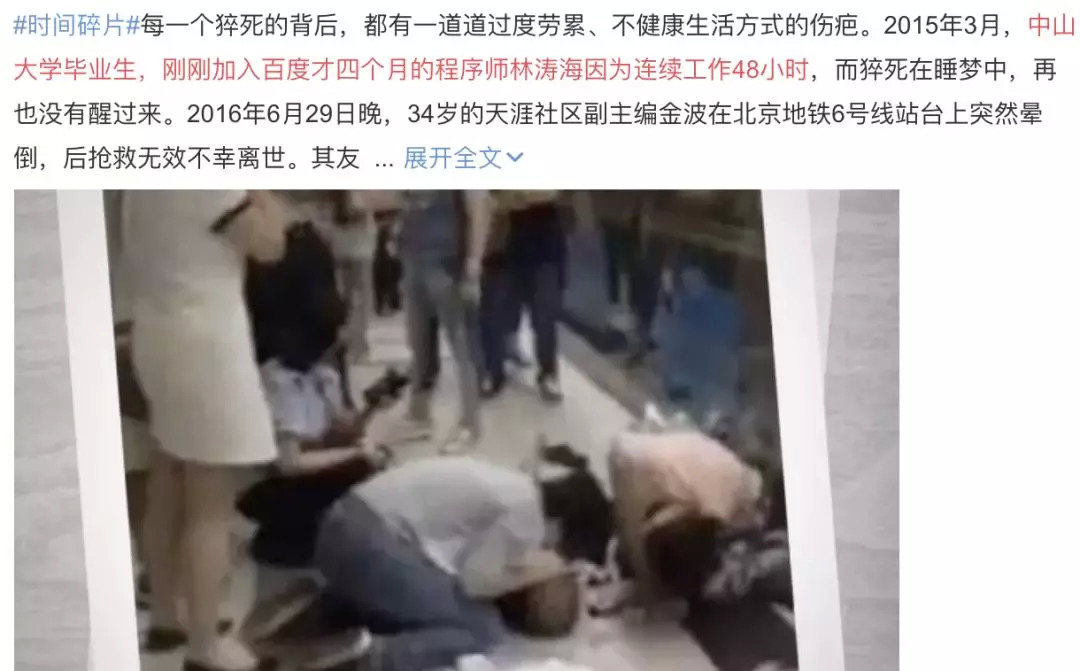 2016年,34岁的天涯副主编因长期加班熬夜,在地铁站猝死。