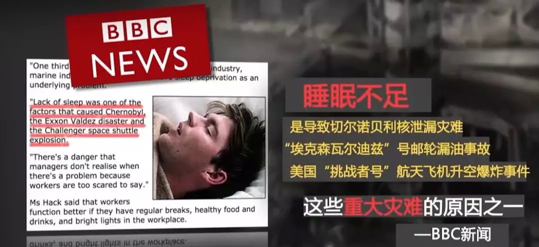 比如,前苏联的切尔诺贝利核泄漏事故,美国挑战者号航天飞船爆炸,还有埃克森瓦尔迪兹号邮轮漏油事故,都和缺觉有关。