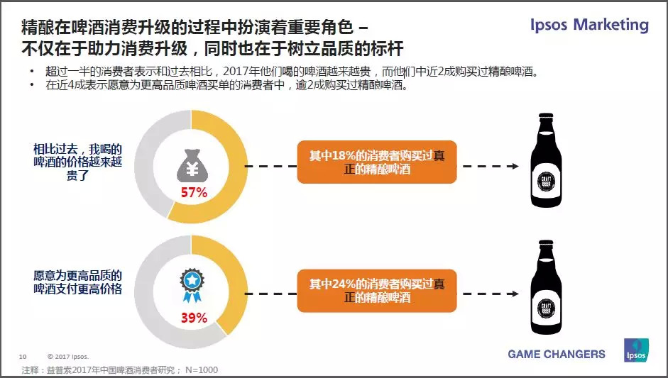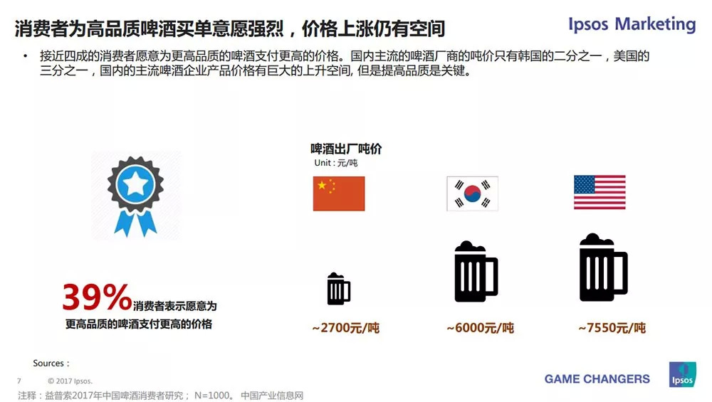 但在益普索看来,在中国市场,国内主流啤酒企业产品价格有巨大的上升空间,但提高品质是关键。