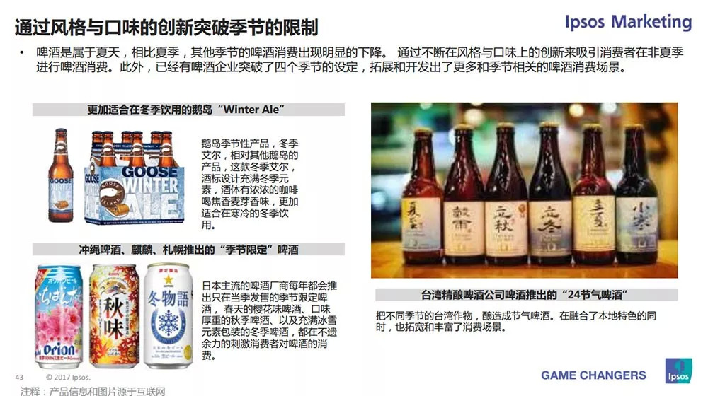 其次则是通过风格与口味创新突破季节限制的啤酒,比如美国啤酒品牌鹅岛推出的冬天啤酒Winter Ale。