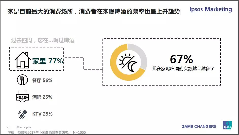 啤酒跟世界杯或许最深情,但与啤酒最长情的却是游戏。根据益普索的调研数据,76%的啤酒消费者在过去三个月玩过游戏,其中97%的受访者表示玩游戏的主要场景是家里。