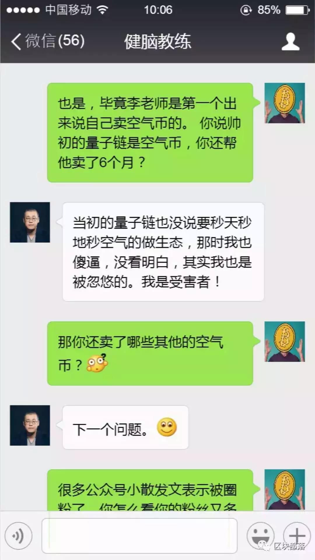 帅初,我是第一个给他卖空气币的人,他会忽悠,长得也帅,到处忽悠。孙宇晨都不用讲,肯定是忽悠,有时候明知道是忽悠,都不好意思去骂他忽悠,怕别人骂自己傻逼。