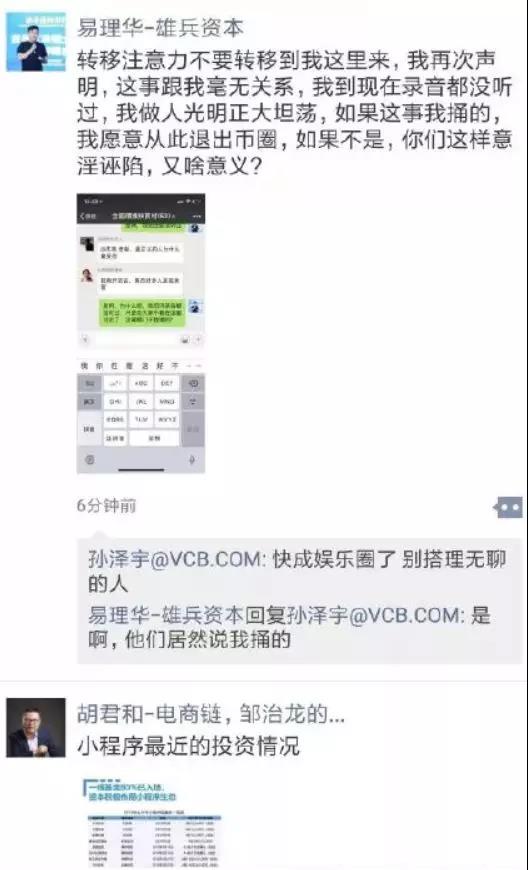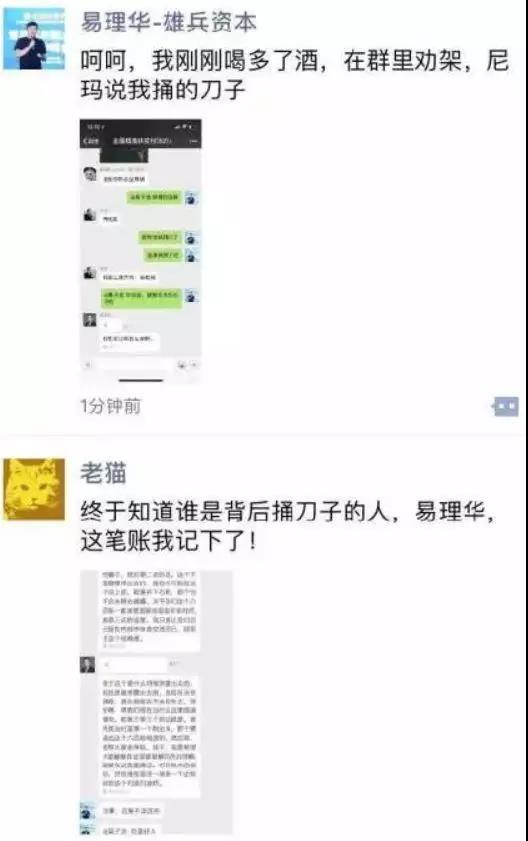 雄兵资本易理华一直对猎云财经表达自己是无辜受害者,他说:“多少次无辜躺枪最后证明清白,用一句话来形容,你伤害了我,还一笑而过。我不发表任何评论,以免又被躺枪。”