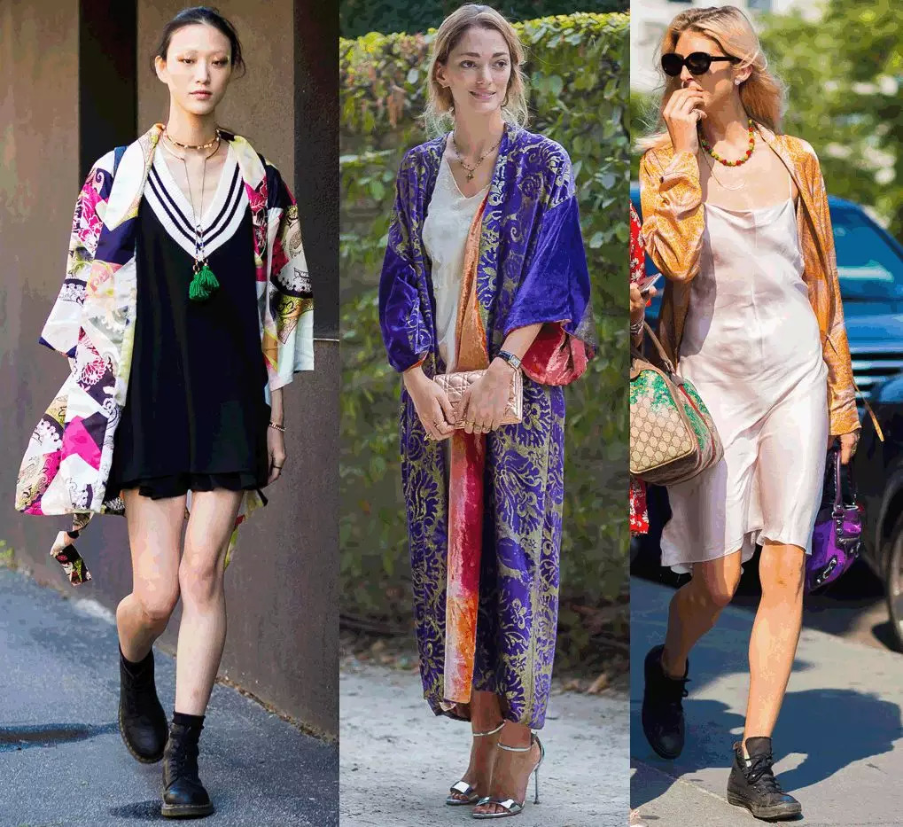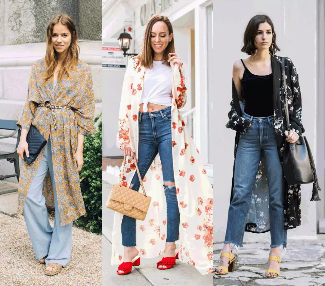 看似花哨的kimono其实也很好搭,衣柜里各种简单的T恤、小吊带,都可以作为内搭。而且如果选择了长款kimono,内搭短裤也不怕黑!