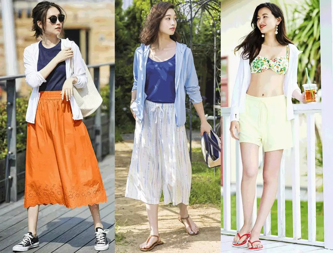 除了衬衫和kimono,可用于防晒的日常外套其实还非常多,只要材质够轻薄,不闷热,都是可以用于遮阳的好物。