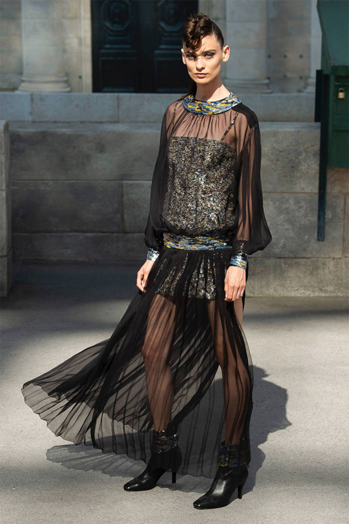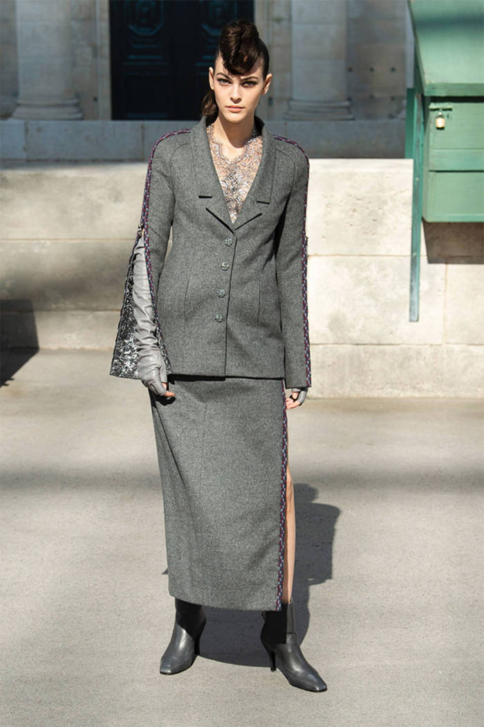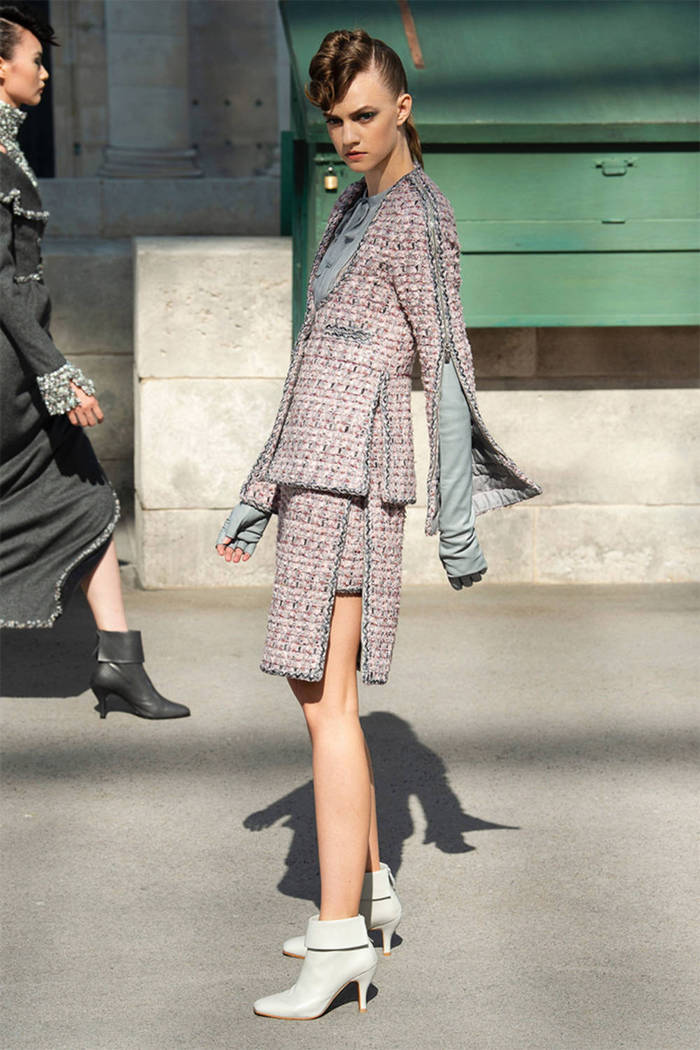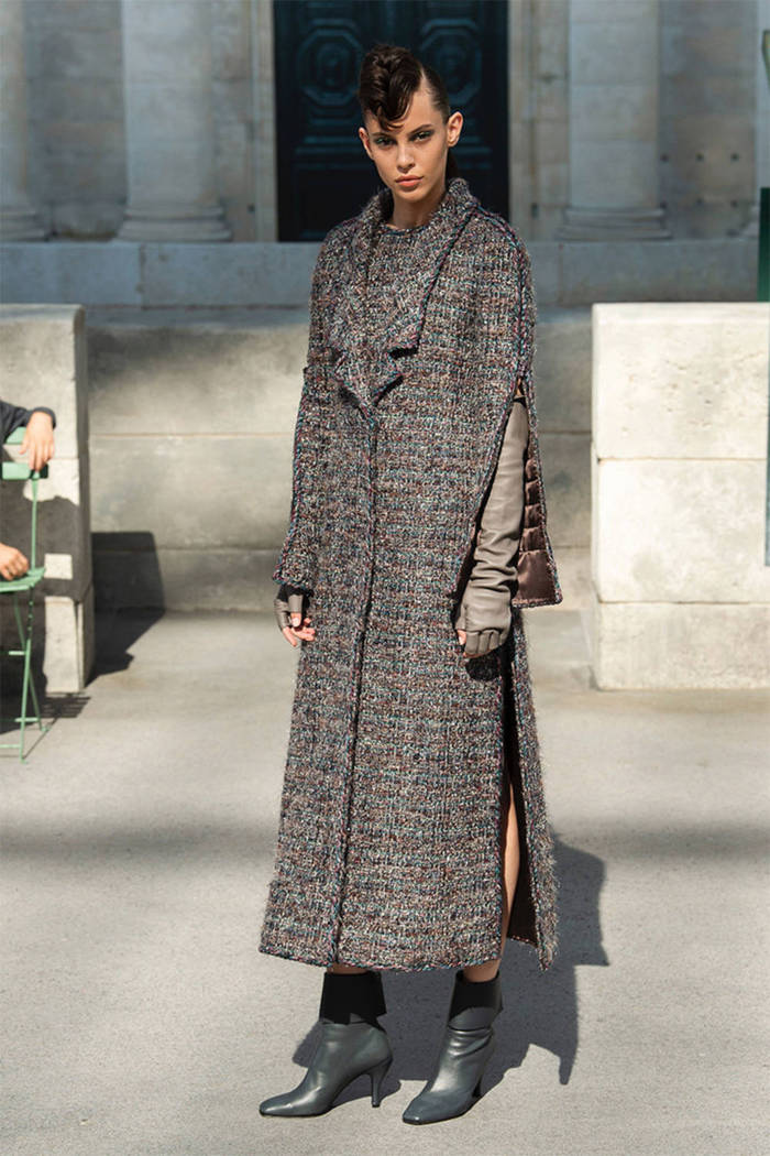 这一次品牌选址位于巴黎大皇宫(Grand Palais),老佛爷Karl Lagerfeld这一季以巴黎街头为背景,强调了巴黎是独一无二的时尚文化之都,香奈儿则是最好的诠释者。这一季的颜色取自秋日的巴黎,屋顶的浅灰、沥青马路的炭灰和黑色,塞纳河上波光的金银色,树叶的温暖棕……