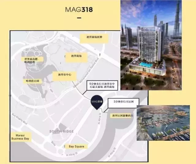 MAG 318另一大优势就在于它的地理位置,它迪拜最中心商业区,三分钟步行到达迪拜运河游艇码头,站在公寓可以清晰看到运河景色,五分钟步行达到迪拜市中心最大商场。可以说,选择MAG 318,不仅选择了迪拜商务区CBD区的繁华与便利,更是选择了居住于世界中心。