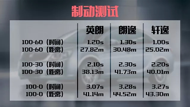 不过作为目前都很热销的三款轿车,它们在紧急制动下稳定性依然出色。那么这三款车在各速度下紧急制动距离如何呢?我们从表中数据便能知道一二。
