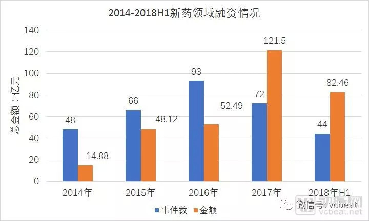 2014年以来新药领域融资323起,总额约320亿元,单笔近亿