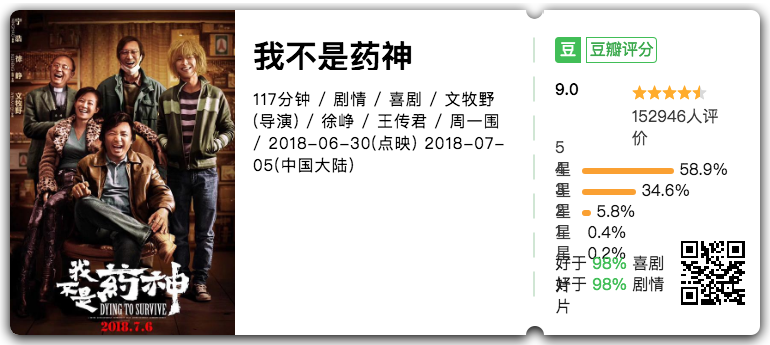 伟大、最优秀的国产现实题材、神片……平时对国产电影哀其不幸、怒其不争的观众,不吝用这些极端的词汇,去表达对7月5日上映的《我不是药神》的喜爱。