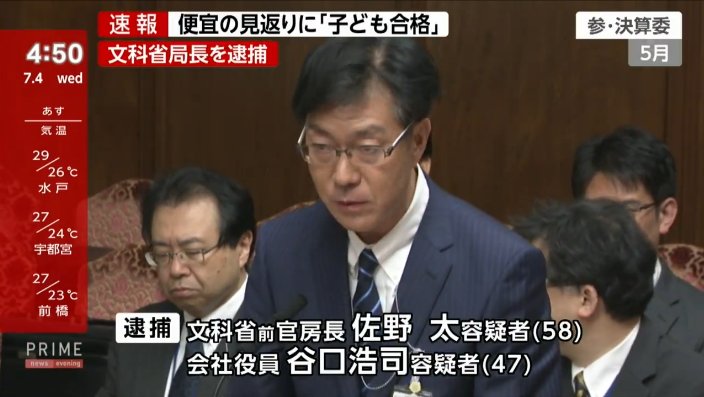 此外,负责给佐野和相关人士牵线的某公司高管谷口浩司(47岁)也以涉嫌协助受贿被捕。特搜部认为,虽然案件中并未涉及到金钱交易,但“高考加分”也绝对够得上“贿赂”了。