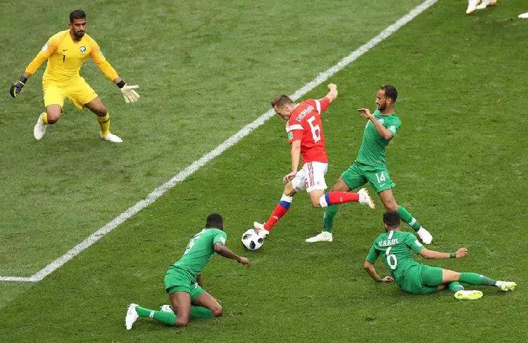 在本届俄罗斯世界杯上,作为东道主的俄罗斯队也一路表现强劲。在首轮小组赛上,东道主俄罗斯队以5-0狂胜亚洲劲旅沙特阿拉伯队。