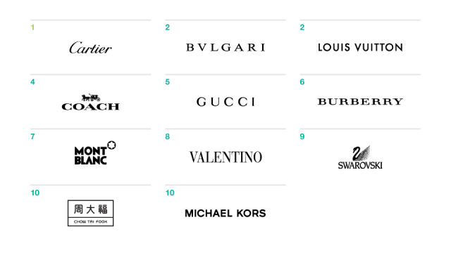 Locking in the number one spot in this year’s ranking, Cartier remains high-profile and one of the most mentioned brands across Baidu Index, WeChat Index, and mobile community apps. It aggressively buys mobile display and purchased against 73% of unbranded category terms on Baidu mobile. Additionally, it builds buzz on social media by featuring brand ambassadors such as Xin Zhilei and Lu Han.