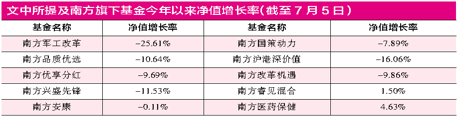 常年盘踞公募十强的南方基金,上半年就遭遇了一系列的“变故”:首先是去年公司业绩最好的基金经理李振兴遭遇滑铁卢;其次是南方军工改革,成为“最差”的军工基金。6月末,万德显示其在1727只同类基金中仅排在1716位;此外,南方权益团队中的刘霄汉离职,而她曾经挂帅的五只产品今年业绩也无甚亮点。