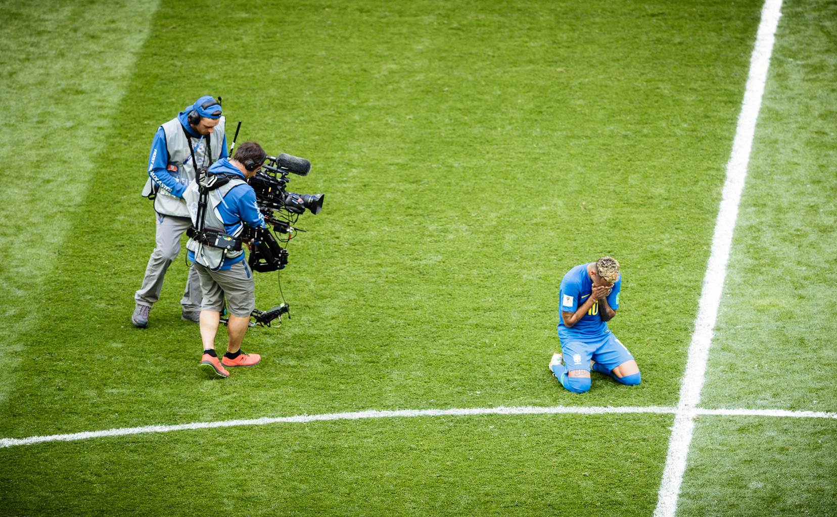 比赛结束后,内马尔独自站在赛场中央,没有像与哥斯达黎加赛后的泪流满面,但仍旧黯然神伤。世界杯开赛至今,内马尔的26脚射门是所有球员中最多的,但26岁的他,终究无力救主。