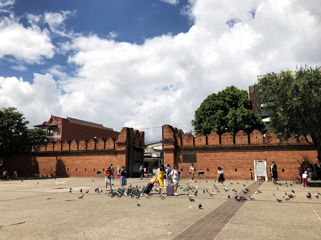 清迈古城中现存最完整的一座城门便是东边的塔佩门,它也是清迈的迎宾大门。古朴而独具特色的城门吸引了数以万计的游客前来,这里遍布着无数酒店和餐厅,很多清迈的活动也是由此作为起点的,如著名的水灯节庆典。塔佩门前是一个小广场,来这里喂喂鸽子,在城墙根坐着看往来行人并放空自己,尽情感受当地文化与意蕴。