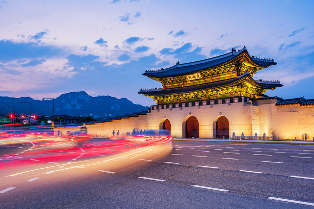 光化门是朝鲜王朝最宏丽的楼门,建于朝鲜王朝太祖在位时1395年修建的景福宫的正门,用拱形花冈岩建造,三门洞上耸立两层木造楼阁,呈现高贵典雅的气派。光化门记载了韩国痛苦的历史,现在的光化门是1968年用水泥而不是木材建造的,它在五大宫门中最美,但未被指定为受保护文物,原因正因为是水泥结构。值得期待的是这里每到整点的换岗仪式,身着古装的人员浩浩荡荡,颇有一番气势。