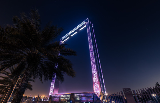 坐落于扎比尔公园内,造价达人民币4亿5千万元,是全世界最大的“门”。其造型像一个巨型的镂空相框,这个设计灵感意源于将迪拜新城和老城的风景同时装入一个相框中,让游客能够360度感受到迪拜市的全景。除此之外迪拜门还在底层建筑中设置了一个博物馆,通过3D影像、烟雾效果等科技手段讲述迪拜的历史变迁,特别是用虚拟现实技术打造的艺术长廊,描绘出了50年后迪拜的大都会景象,也成为一大看点。