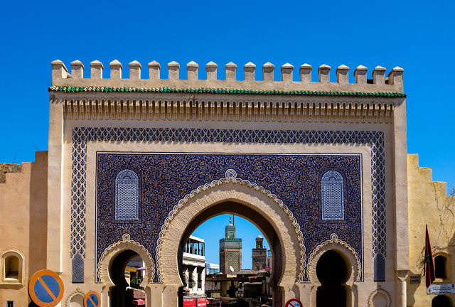 这座城门外侧镶嵌着大量的蓝色马赛克瓷砖,是典型的伊斯兰建筑风格,古典而充满异域风情。蓝门处于古城中两条最重要道路的起点处,周边是皮具店、手工艺品店和餐馆聚集地,大部分游客都会选择从这里进入菲斯老城。踏进蓝门,穿梭在一千零一夜的小巷子里,迎面而来的阿拉伯人,回头看见的毛驴拉货,转角迷路的千巷万户,脚步无法丈量,神奇而迷失的国度,如果有一张飞毯在头上飞过,你也不会觉得奇怪。