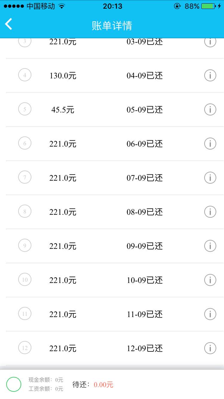 蓝敏向界面新闻出示的APP账单截屏显示,他应还工时204个小时,共分12期,工时计价10元/工时,购买工时价格为13元,即他若兼职一小时,可抵10元,他若缺一小时工时,则需向704公司交13元。账单显示,蓝敏每月需兼职17工时,若折算成现金,每月需还221元。界面新闻记者看到,蓝敏出示的12期款项均标注为“已还”。