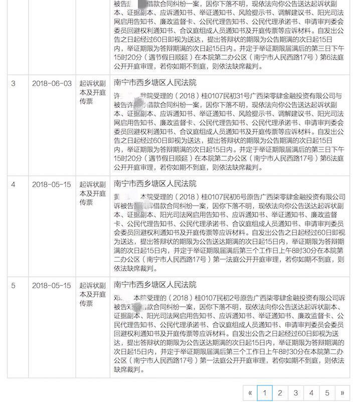 截至2018年6月10日,西乡塘法院已发布20余份704公司提起的借款合同纠纷起诉状副本及开庭传票,被告疑似该系列案件被诉大学生。