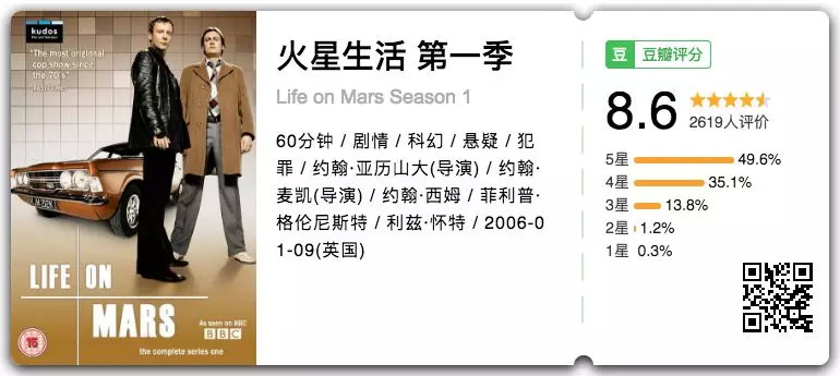 因为原版实在太出色。英剧版本的[火星生活]于2006年播出第一季,一共八集,一开播就获得了英国电视学院奖及艾美奖。