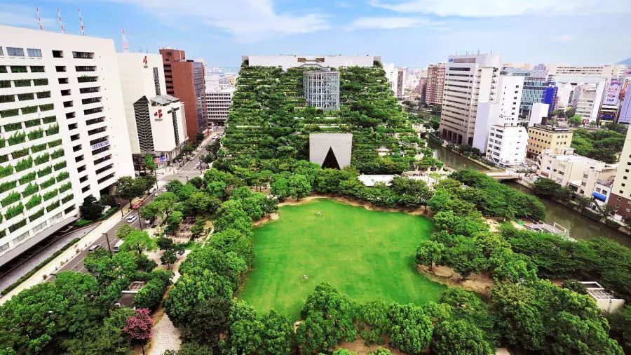 在日本福冈市中心,有一栋名为 ACROS 的 14 层建筑像印加金字塔一样拔地而起。这栋建筑由阿根廷建筑师 Emilio Ambasz 设计,除了造型独特之外,建筑师还在每一层的顶部都铺满了植物,还有人工的池塘和瀑布,让人在一座现代化城市的高处,也能感受到美妙的自然气息。