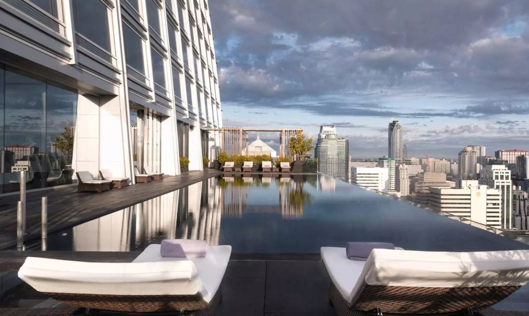 Okura Prestige Hotel 的游泳池位于酒店 25 楼的顶层,它的设计和新加坡金沙酒店的相仿,修长而提供上佳的观景视野。在这里,你可以将曼谷的钢筋丛林一览无余。