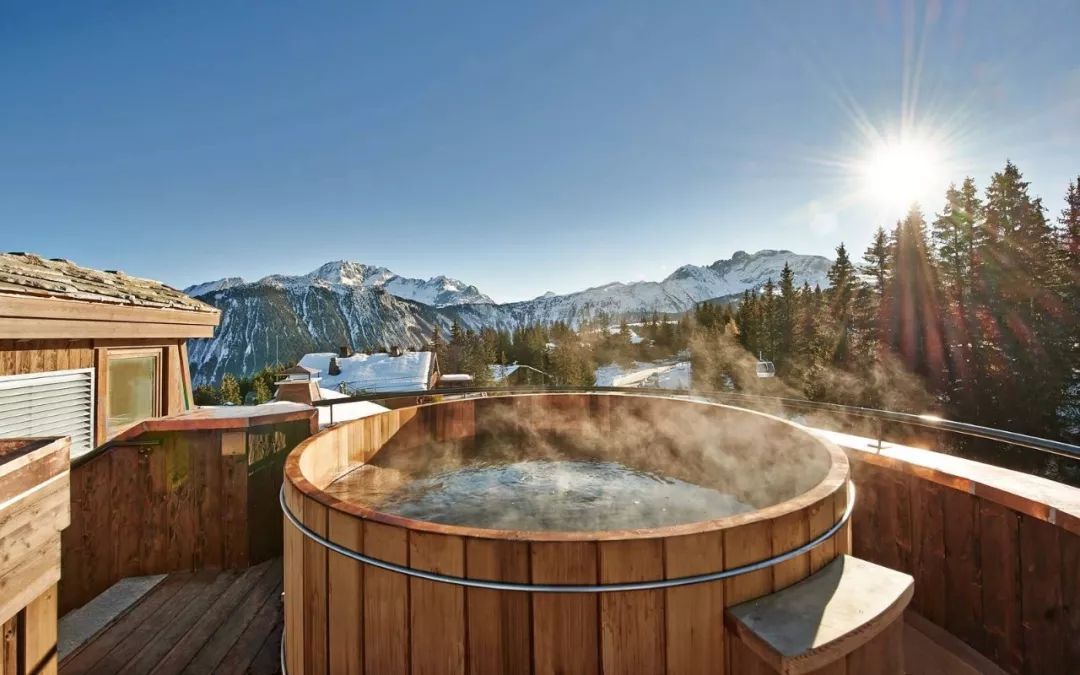 这家五星级酒店位于法国阿尔卑斯山滑雪胜地小镇,屋顶露台设有带热水的浴池,享有阿尔卑斯山脉和山谷的绝美景致。