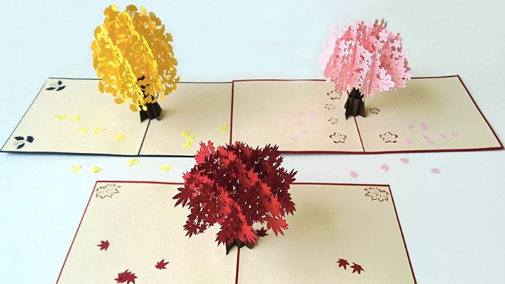 这款号称 3D 的贺卡,只要轻轻打开,就可以看到隐藏的树木(据说还会飘落花叶)。