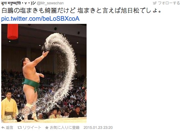 在所有相扑力士中,旭日松以其撒盐的量最大、场面最为华丽而备受推崇: