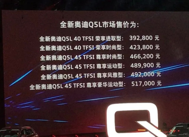 最后,奥迪Q5L售价最高的三个配置,相比指导分别下调约2万元、近2万元和超过6万元。由此,在顶配车型上奥迪Q5L一下子比宝马X3低了近7万元,性价比凸显。