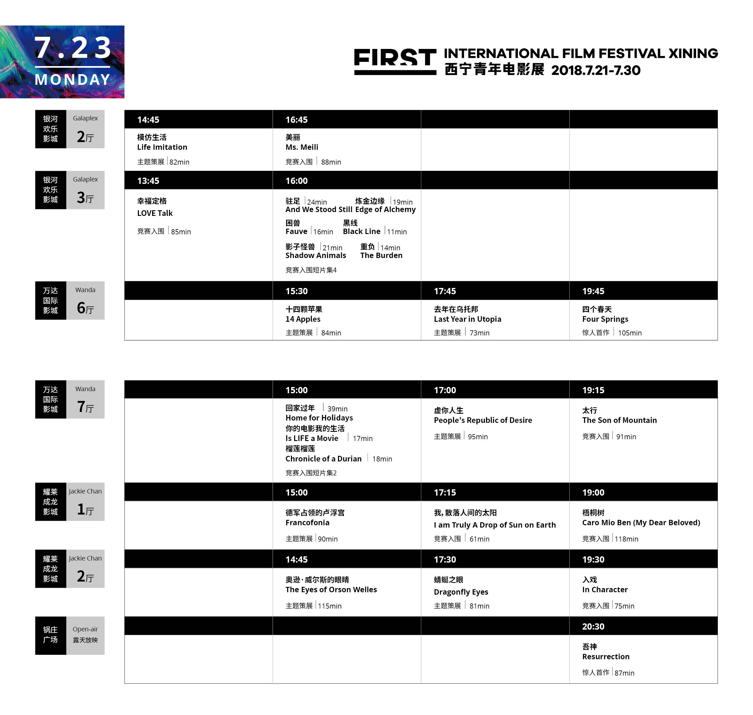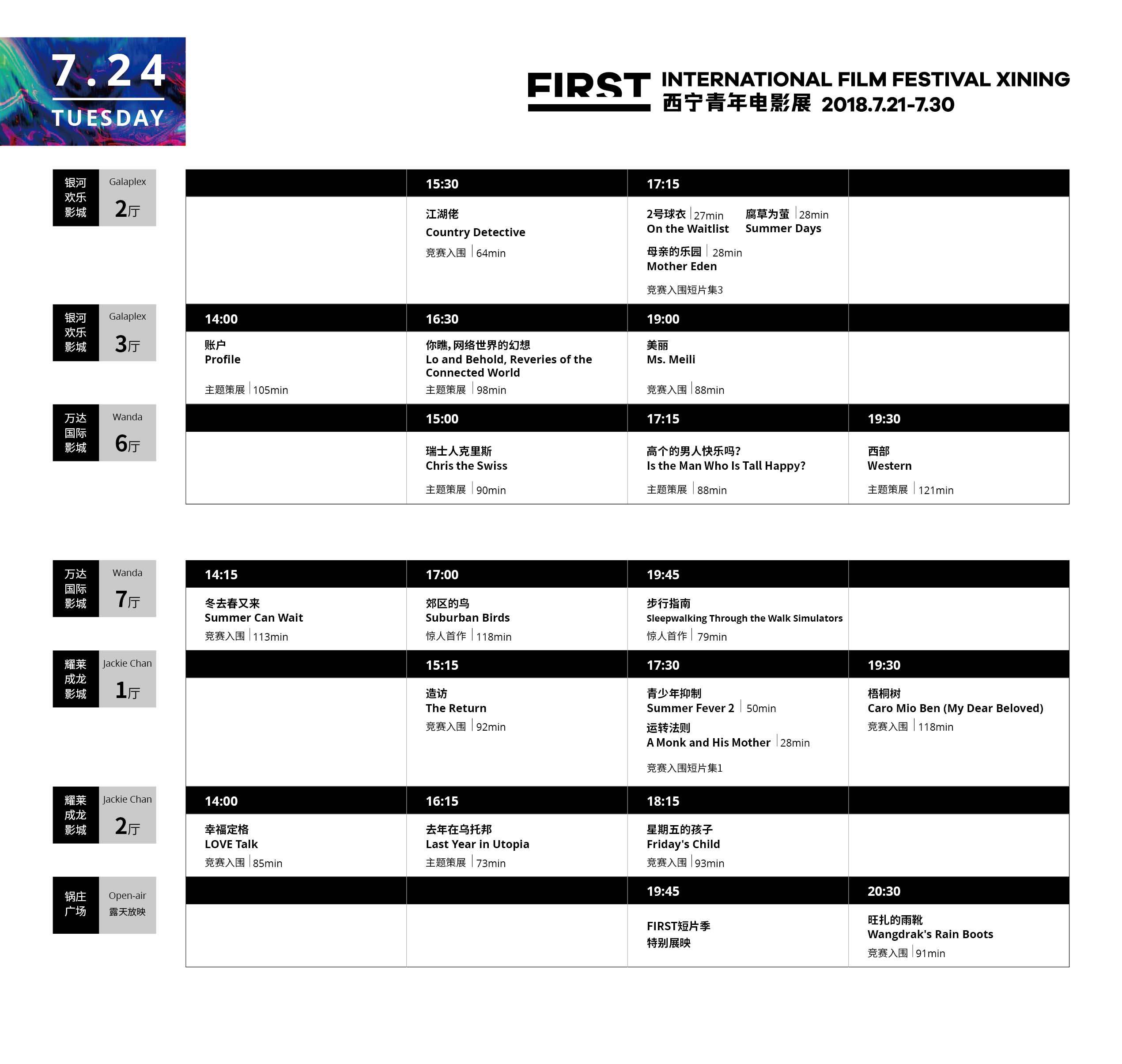 7月21日至7月30日,38部竞赛入围影片和16部主题展映影片将在西宁陆续与观众见面。