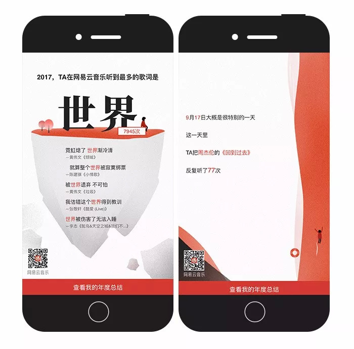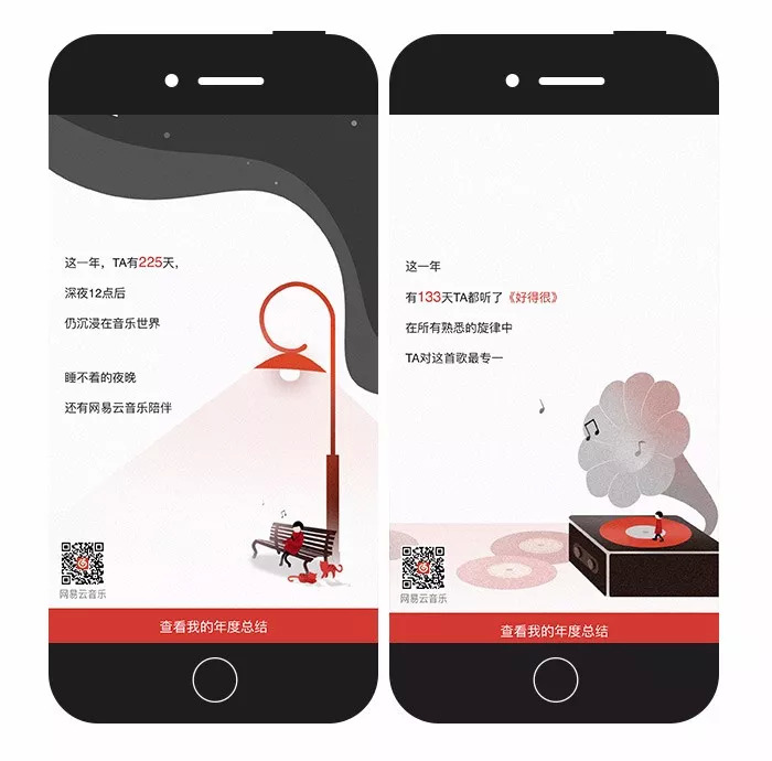 在忙着写年终总结的时刻,网易云音乐通过每位用户这一年的听歌“足迹”,通过若干不同的维度,如深夜听歌、小众品味、特殊日子回顾等,来分析用户的年度数据,所有数据都基于用户的行为。最后,生成的年度报告海报可保存,引导用户自发分享至各社交平台,吸引更多用户参与活动,有效增加曝光量,提升品牌影响力。